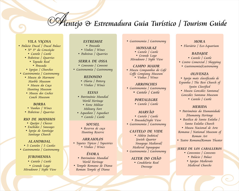Vila Viçosa é o ideal ponto de partida na descoberta dos ricos roteiros turísticos existentes no alentejo, tais como dos vinhos, azeite, mármores, castelos, monumentos megalíticos e muitos outros.